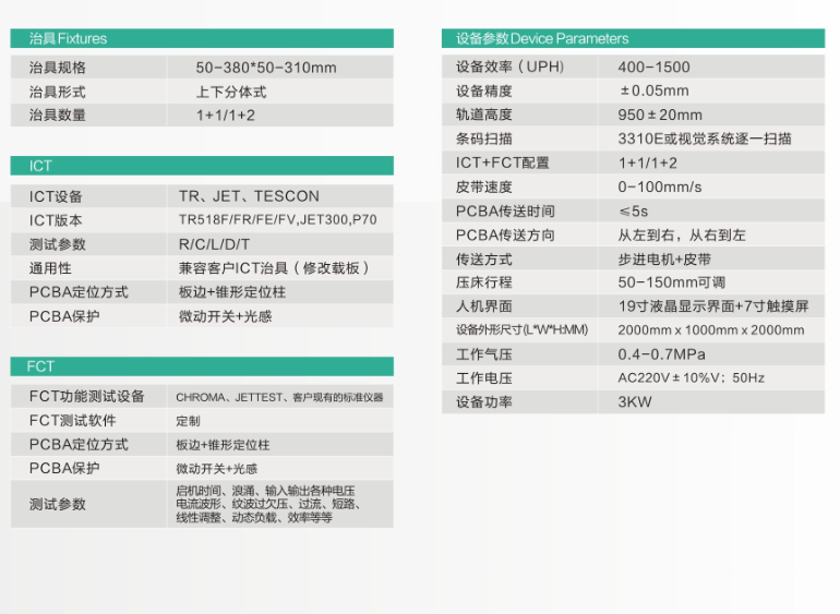 1、自动ICT测试+自动FCT测试双工位或者多工位设计,节约人力。